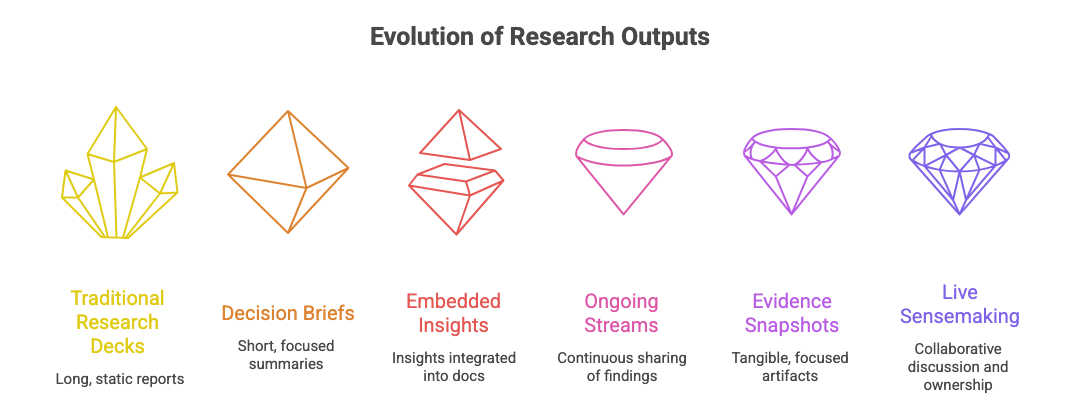 In many teams, research reports are no longer the main output.