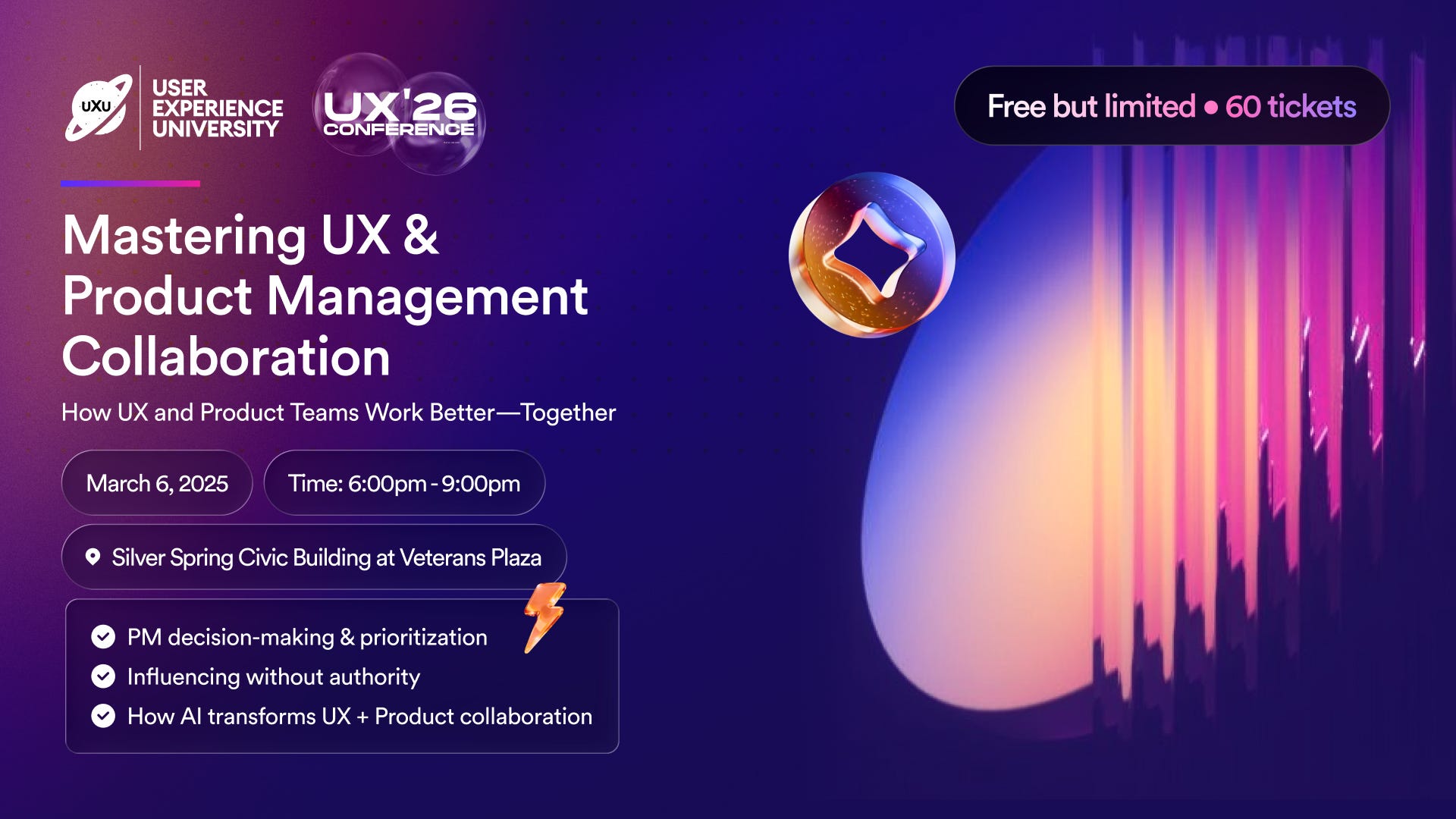 Join us for a practical session where UX pros and Product Managers unpack how work really gets done. Learn how to influence direction without formal authority, navigate collaboration breakdowns, and leverage AI in your workflows while building stronger, more productive relationships across teams.
